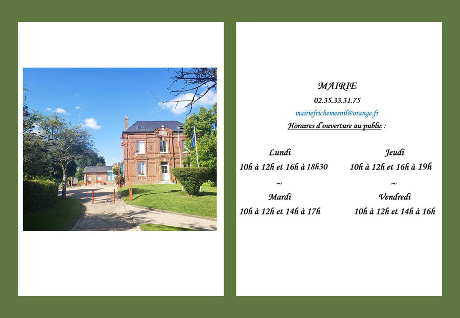 Frichemesnil commune de charme, fleurie où il fait bon vivre est désormais présente sur Internet et vous propose grâce à son site Internet de découvrir, mais aussi, de vous informer que ce soit sur la Mairie et ses différents services afin d'être avertis des manifestations culturelles ou festives de votre village.